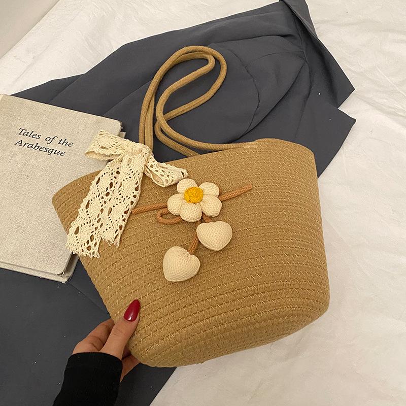 Модная женская летняя сумка с цветочным декором ручной работы, новая модная сумка через плечо на одно плечо, сумка-ведро