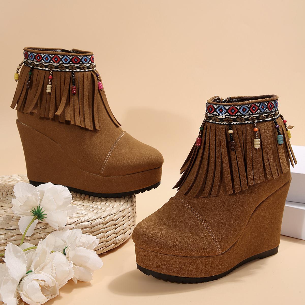 Модная женская обувь Ботильоны Зимние женские короткие ботинки Зимний тренд Очень высокие каблуки Платформа Клинья Новые рок Элегантные Ботинки на распродаже 36 коричневый
