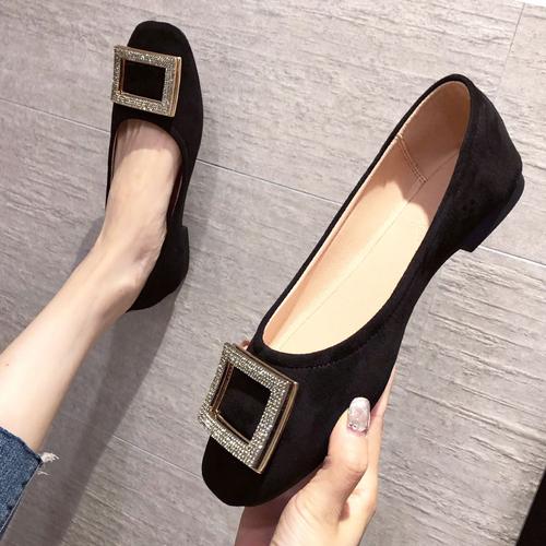 Модная женская обувь на плоской подошве с квадратным носком, весна-осень, новая, неглубокая, со стразами, черная, универсальная, красная, с мягкой подошвой, большого размера для женщин 31 чёрный