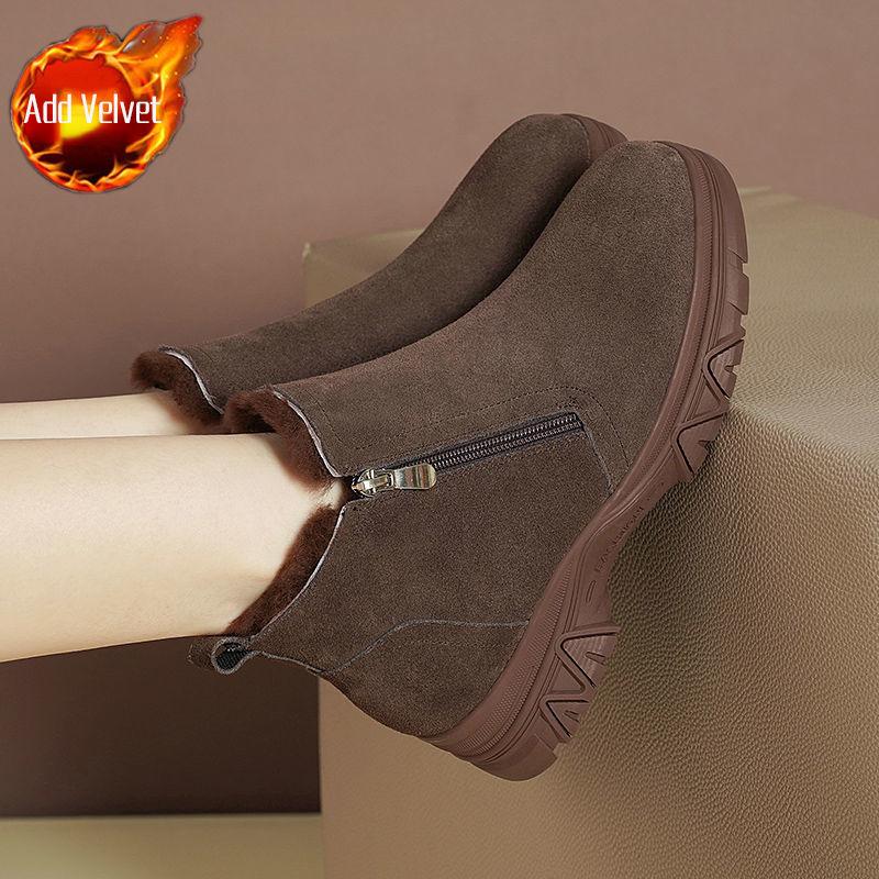 Модная женская обувь на флисовой подкладке с круглым носком Зимние ботинки на платформе Дизайнерская роскошь 2025 Новинка в готическом стиле Большой размер Теплые до щиколотки 35