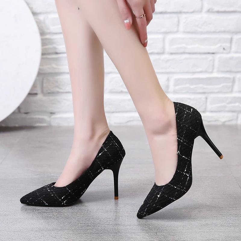 Модная женская обувь 2024 Горячая распродажа Женские туфли на высоком каблуке с мелким вырезом Модная цветовая гамма Офис и карьера Сексуальные туфли-лодочки с острым носком Женские 39 чёрный