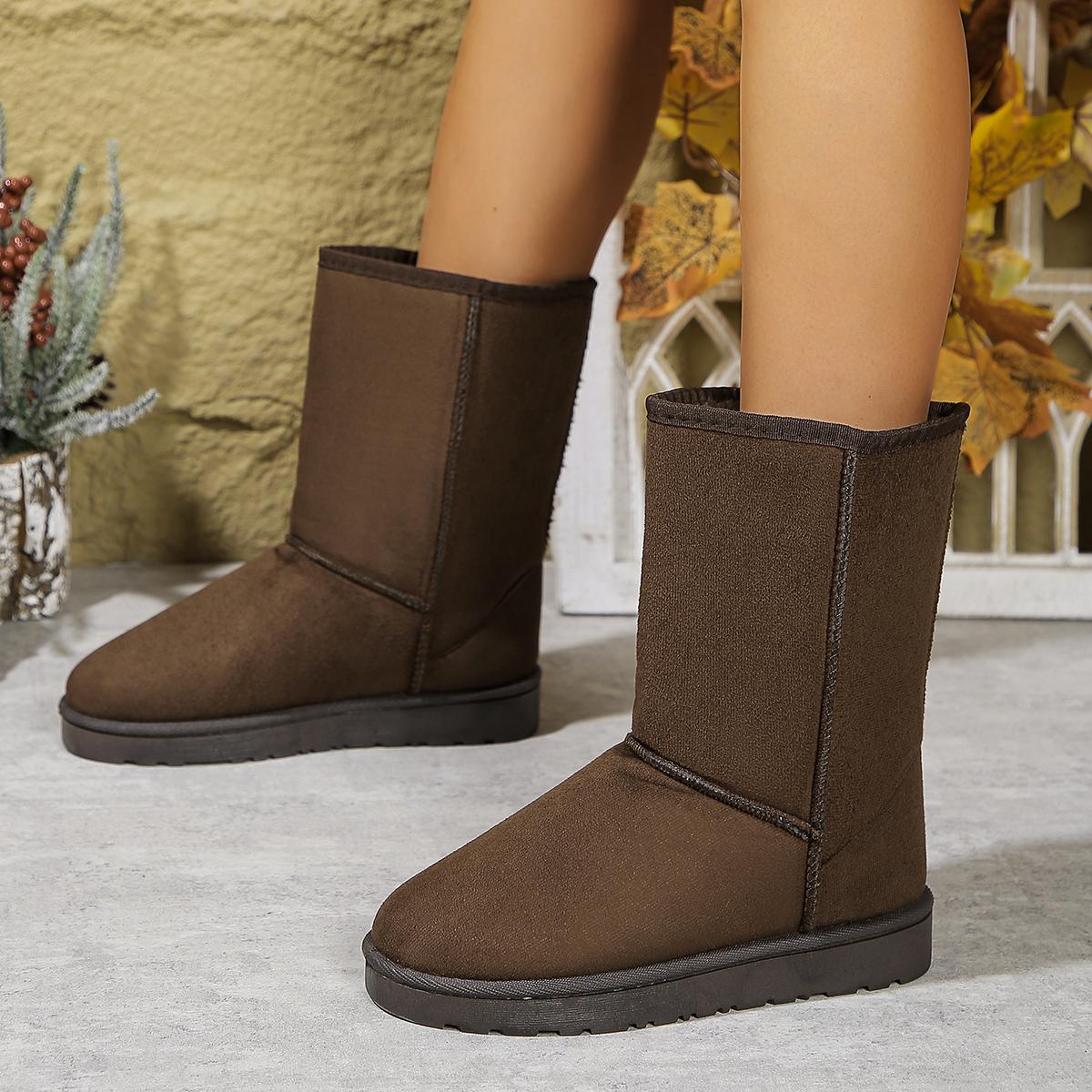 Модная женская обувь 2024 года, высококачественные зимние женские ботинки без застежек до середины голени, модные однотонные повседневные зимние ботинки, ботинки на платформе большого размера 42 коричневый
