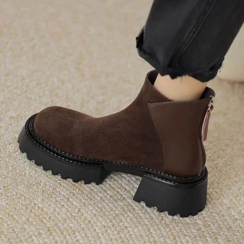 Модная женская обувь 2024 года, модные женские ботинки на молнии, осенне-зимние, с круглым носком, плюшевые, флисовые, для тепла, однотонные, короткие, голые ботинки 40