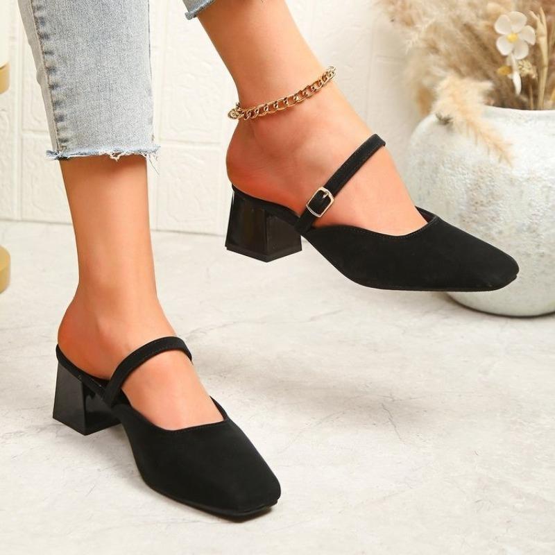 Модная женская обувь 2025 Горячая распродажа Женские тапочки с закрытым носком Модная уличная нарядная Новая пряжка на ремне Большой размер Бестселлер Каблуки Женщины 35