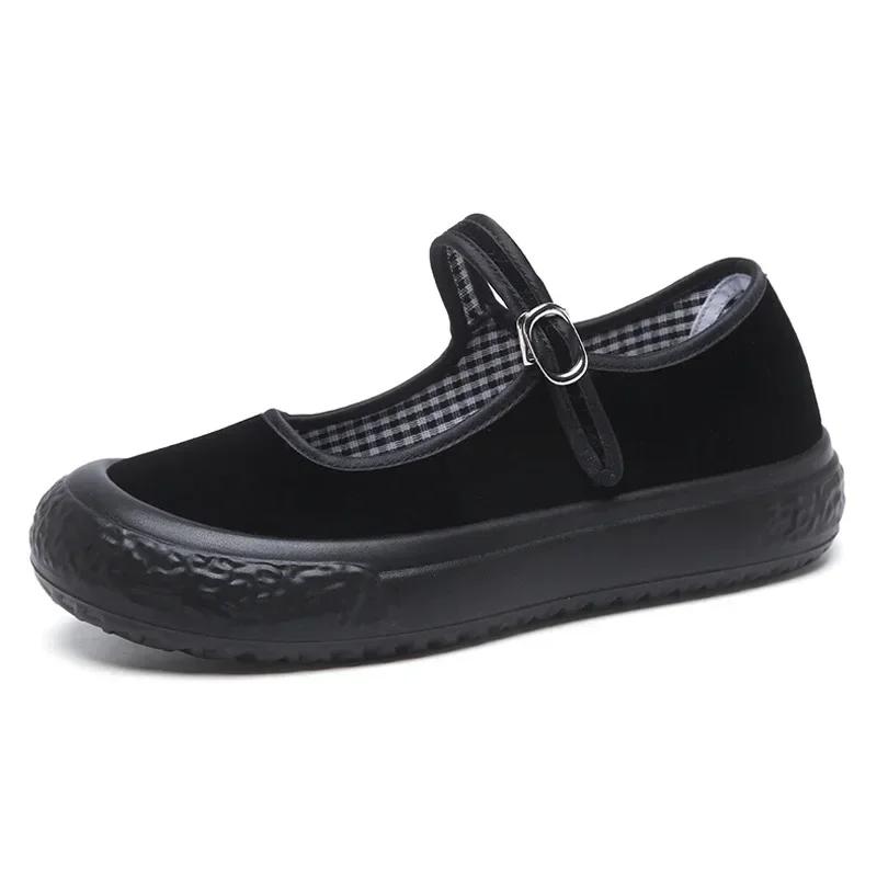 Модная женская осенняя новая одинарная обувь повседневная дышащая с круглым носком на толстой подошве на плоской подошве удобная нескользящая обувь для ходьбы с пряжкой 41 чёрный