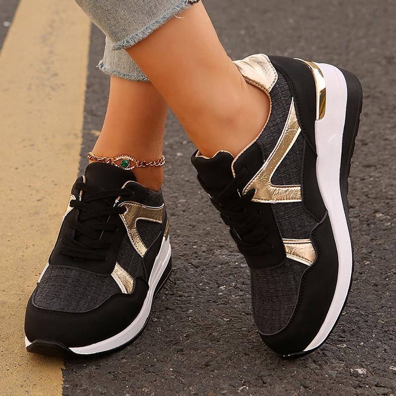 Модная женская повседневная спортивная обувь больших размеров, модные удобные кроссовки на танкетке, женская весенне-осенняя обувь на толстой подошве, нескользящая обувь для бега 37 чёрный