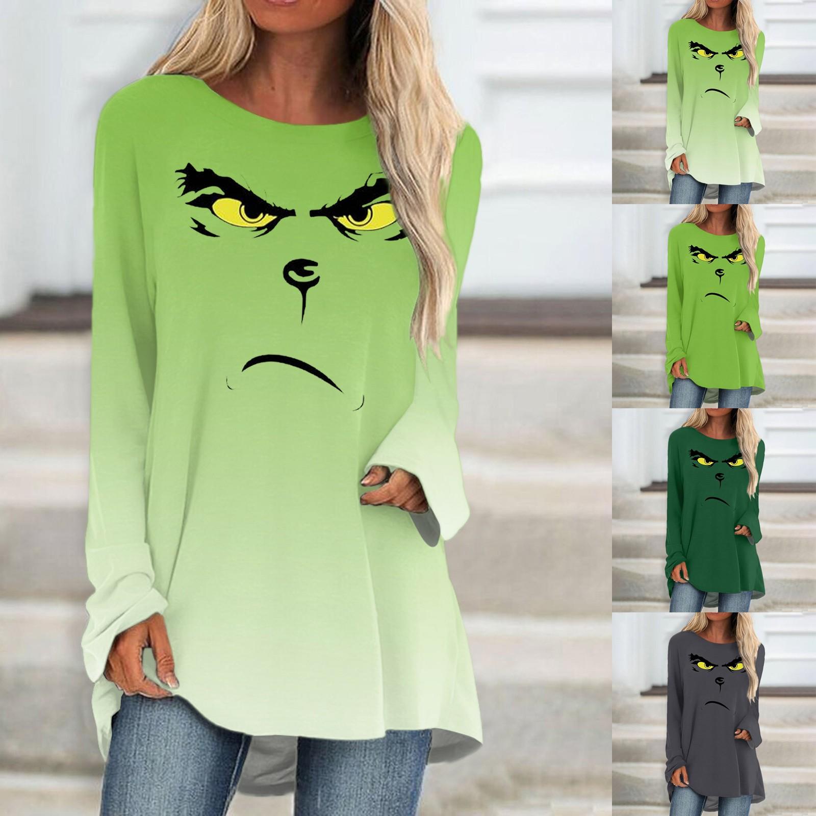 Модная женская повседневная футболка больших размеров с длинными рукавами и круглым вырезом с принтом