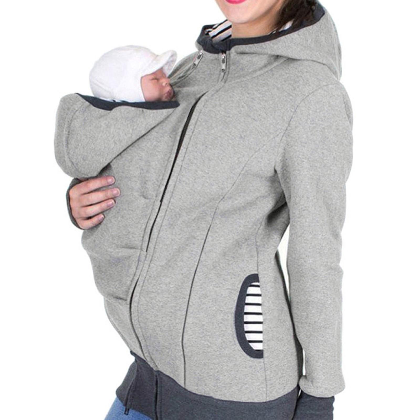 Модная женская полосатая сумка для беременных с капюшоном на молнии, пальто для беременных L серый