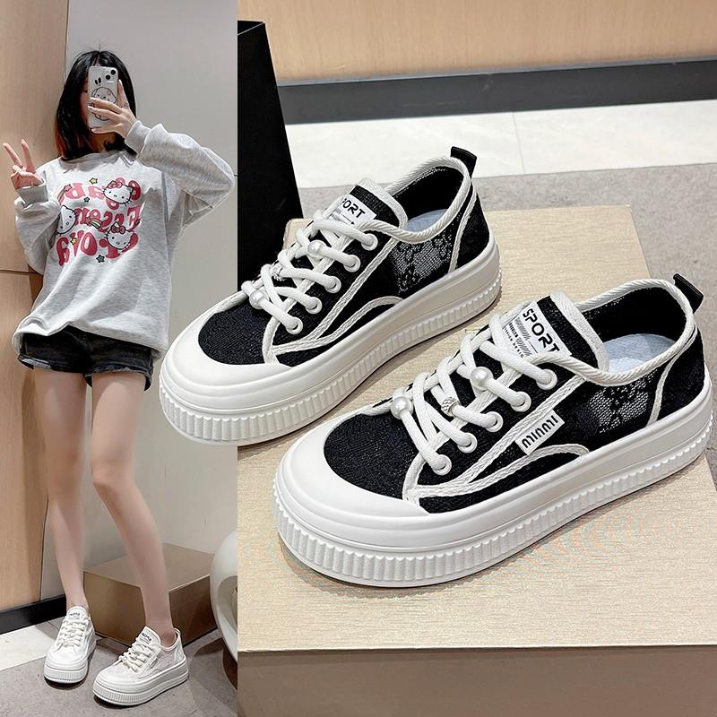 Модная женская спортивная обувь Baotou 2024 года, летняя новая обувь на толстой подошве, универсальная сетчатая кружевная дышащая обувь для ленивых, повседневная спортивная обувь 40 чёрный