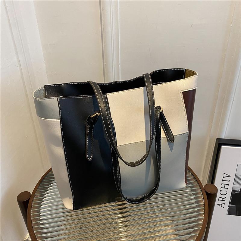 Модная женская сумка в стиле колор-блокинг, 2025 год, новая, из ПУ, с мягкой поверхностью, повседневная на плечо, простая женская сумка для ношения в руке серый
