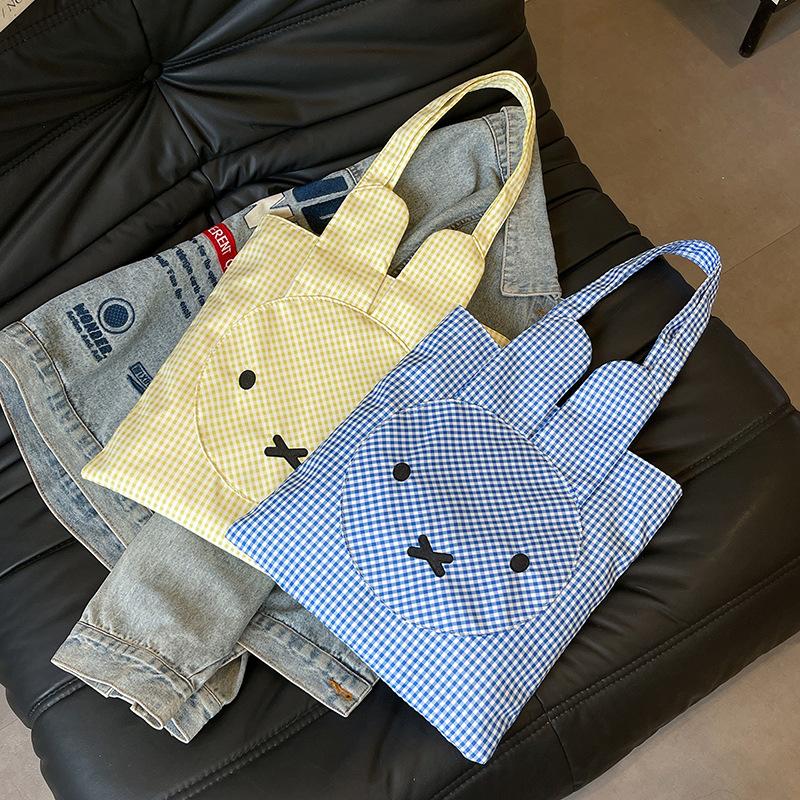 Модная женская сумка для внешней торговли, весна-лето 2025, свежая синяя клетчатая модная тканевая сумка большой вместимости, повседневная наплечная сумка в зарубежном стиле