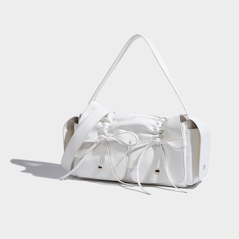 «Модная женская универсальная сумка через плечо 2024 года со складками, завязывающимся ремешком и шнурком» Length 32*width 12*height 16cm белый