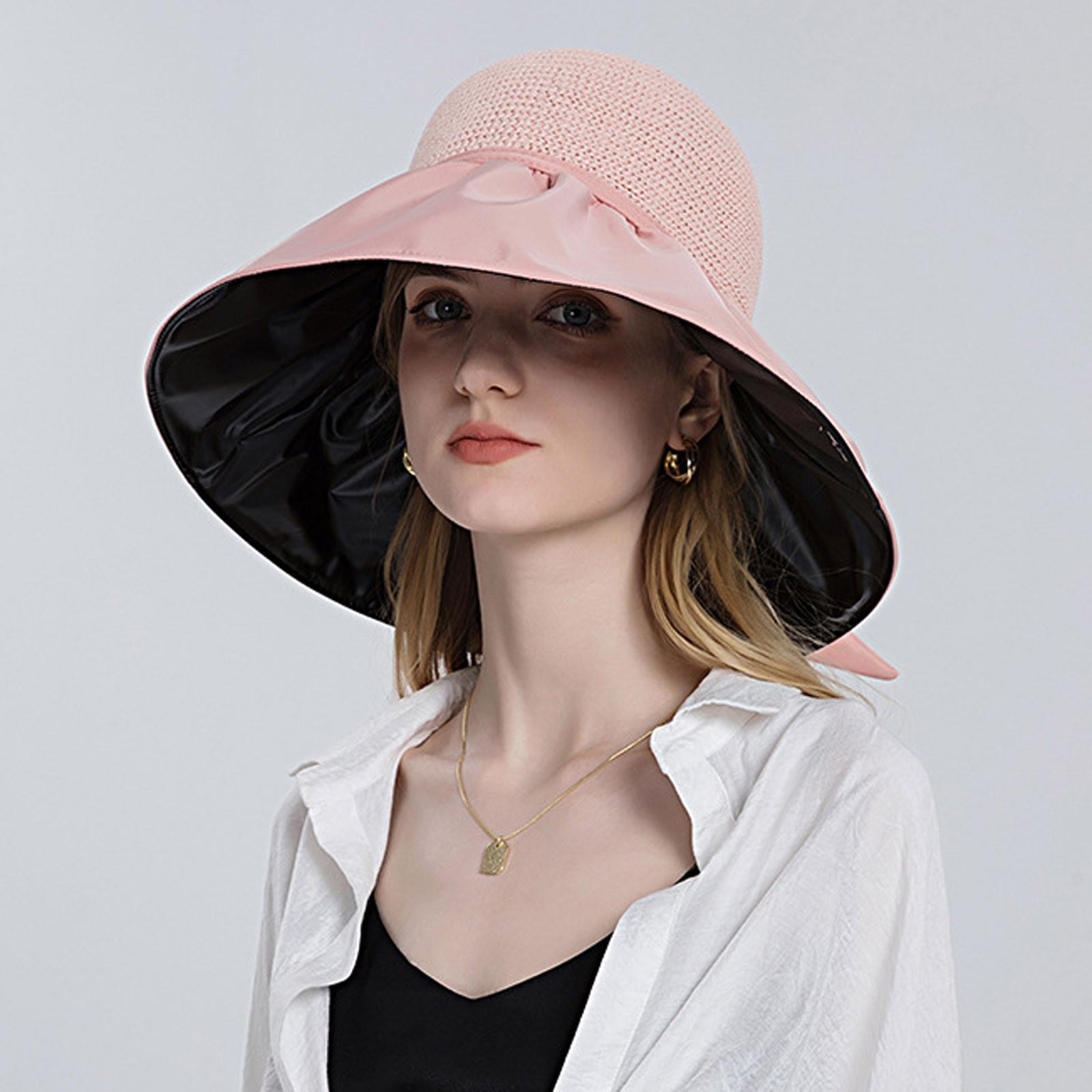 Модная женская шляпа с бантом на открытом воздухе, закрывающая лицо, пляжная шляпа-ведро, складная шляпа от солнца, шляпа от солнца One Size розовый
