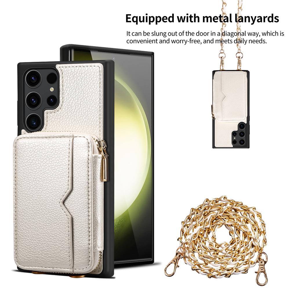 Модная задняя крышка на молнии из натуральной кожи для Samsung S23 Ultra S22 Plus 5G, кошелек через плечо, противоударные чехлы с плечевым ремнем Samsung S22Ultra