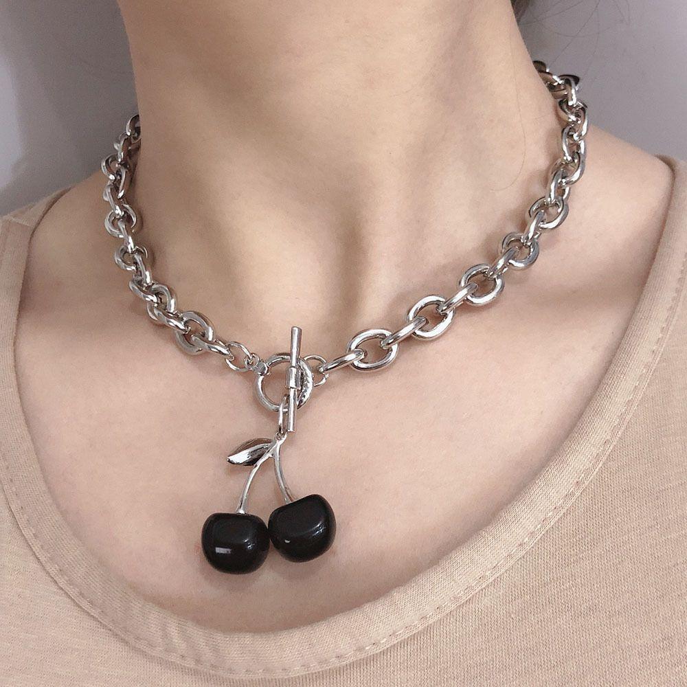 Модная звеньевая цепочка в готическом стиле в стиле панк из нержавеющей стали с подвеской в виде вишни в стиле хип-хоп, ожерелье на ключице