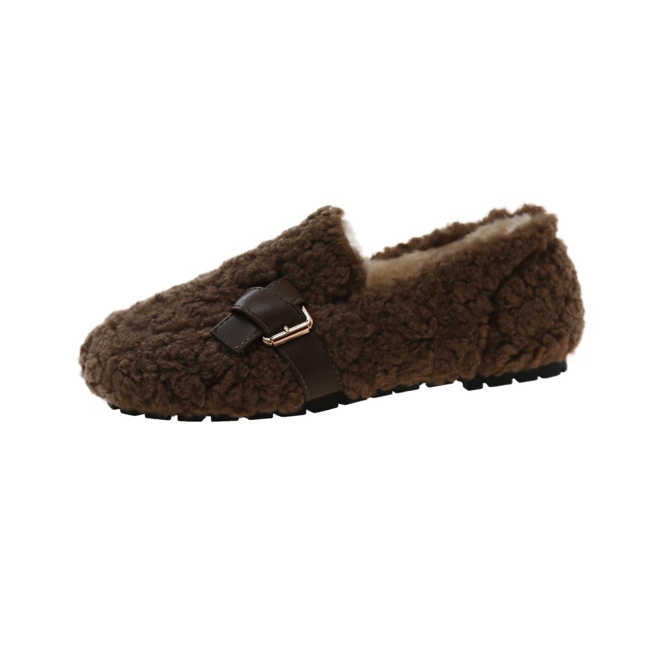 Модная зимняя женская обувь с круглым носком, теплая плюшевая обувь 2024 года, высококачественная новая нескользящая обувь на плоской подошве для отдыха на открытом воздухе, удобная женская обувь 40 кофейный