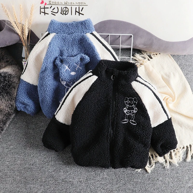 Модная зимняя куртка для маленьких девочек и мальчиков, плотное пальто из овечьей шерсти для младенцев, детей ясельного возраста, теплое па...