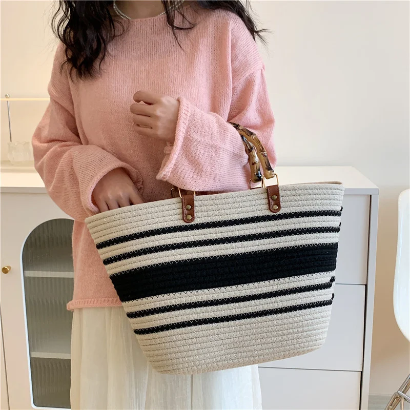 Модная классическая вместительная плетеная женская Соломенная Сумка на одно плечо, простая популярная Повседневная вязаная сумка-тоут для...