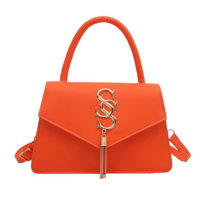 Модная кожаная маленькая квадратная сумка из полиуретана с шикарными кисточками, идеально подходящая для поездок на работу оранжевый