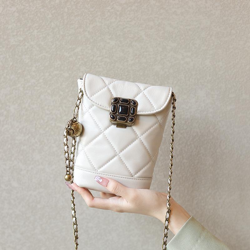 Модная кожаная сумка-цепочка для мобильного телефона Xiaoxiang, новая, с бриллиантовыми драгоценными камнями, маленькая золотая сфера, на одно плечо, из телячьей кожи, женская сумка