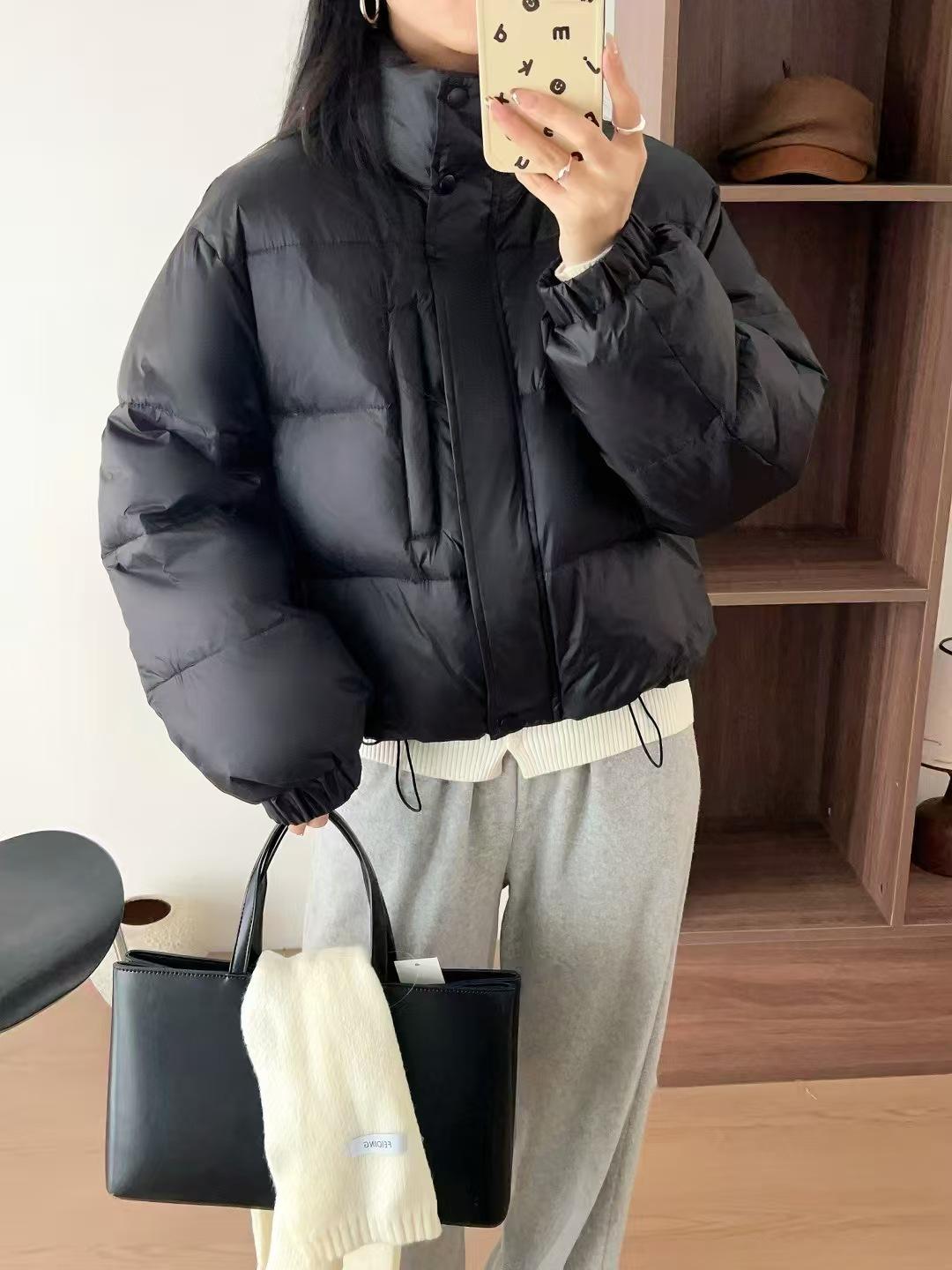 Модная короткая куртка из хлопка с пухом, со стойкой, женская, зимняя, 2025, новая, утолщенная, теплая, куртка-«хлеб» M чёрный