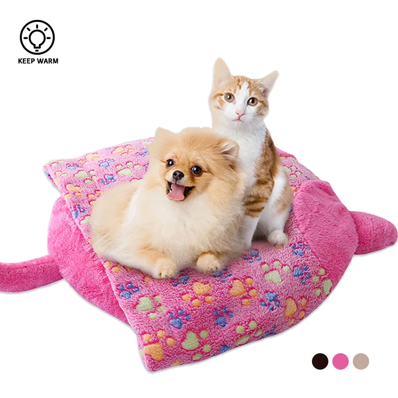 Модная кошачья кровать, теплая мягкая Нескользящая плюшевая подушка для сна, утолщенная Удобная Полуоткрытая кровать для кошек, легко чист...