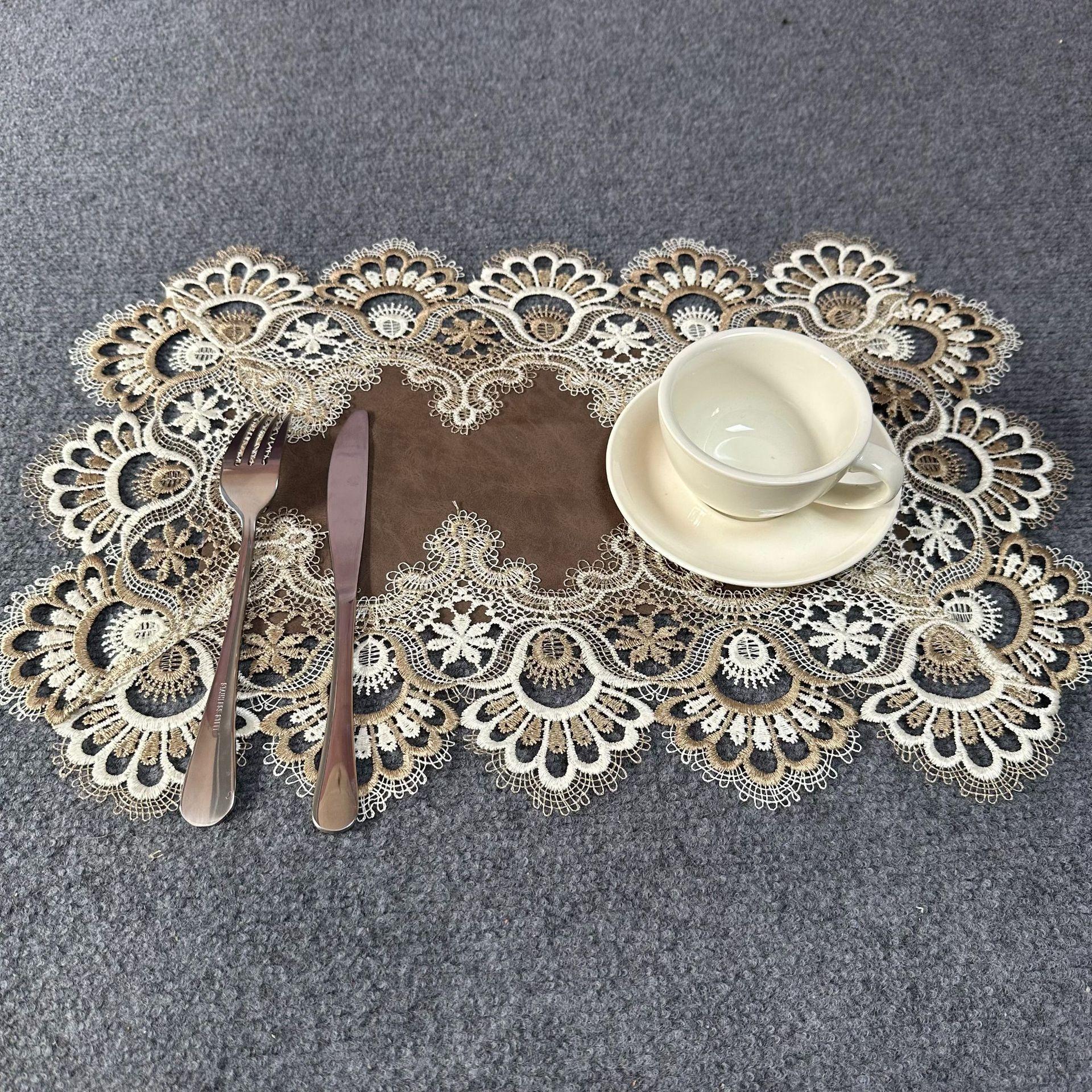 Модная кружевная скатерть в европейском стиле с цветочной вышивкой, водонепроницаемый коврик из полиуретана, украшение для стола 30x45cm коричневый