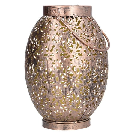 Oval Solar Hollow Lamp Portable Decorative Wrought Iron Brown Projector Light for Outdoor