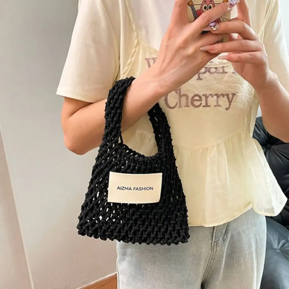 Модная летняя соломенная вязаная сумка, однотонная пляжная полая сумка для отдыха, повседневная тканая сумка-тоут для отдыха, дорожная сумка