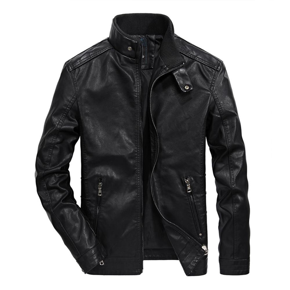 Модная мужская зимняя повседневная теплая кожаная куртка с карманами и пуговицами, пальто XXXL чёрный