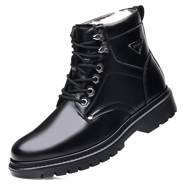 Модная мужская кожаная обувь с высоким верхом Универсальные стили для осени и зимы Повседневная Деловая Офисная Ежедневная уличная теплая Черные ботинки Новинка 44 чёрный