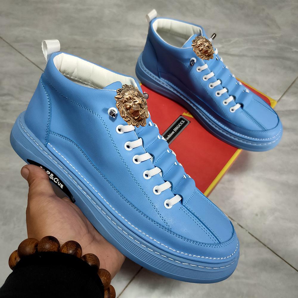 Модная мужская кожаная повседневная обувь Весна и осень новая дизайнерская принтованная модная обувь на шнуровке на плоской подошве 44 синий