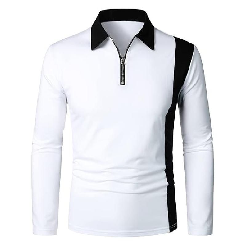 Модная мужская рубашка поло с длинным рукавом с цифровым дизайном в стиле колор-блок, весенне-осенняя, повседневная, для улицы, 100% полиэфирное волокно 3XL белый