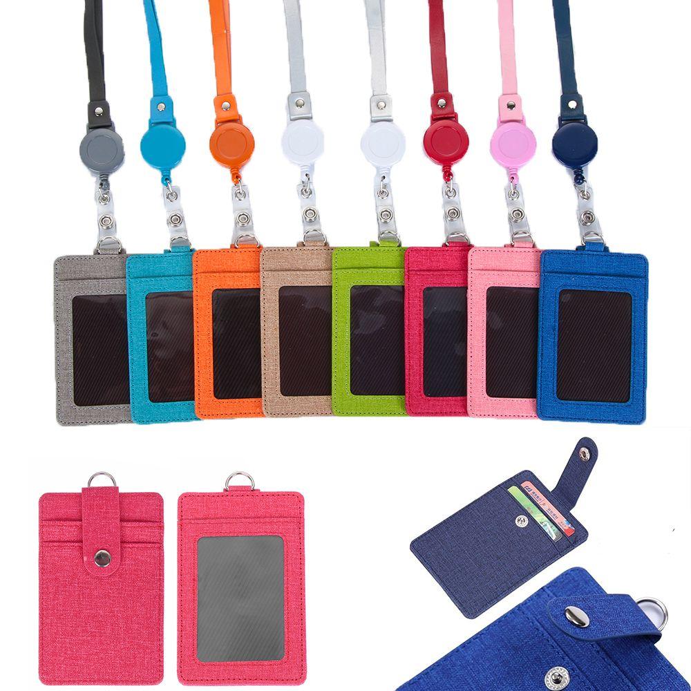 School Office Supplies Leather ID Badge Holder Work Card Holders Name Card ID Business Case бежевый