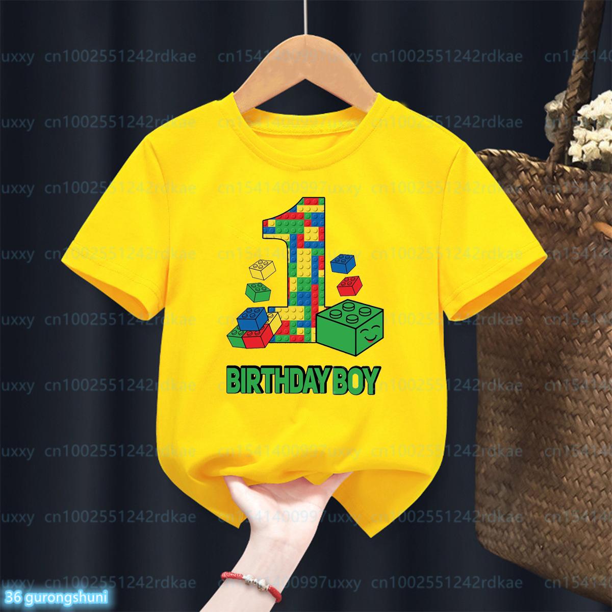Модная новая футболка для мальчика, забавные строительные блоки, футболка для детей от 1 до 10 лет, летняя футболка с круглым вырезом, топы для детей, футболка в подарок на день рождения 100