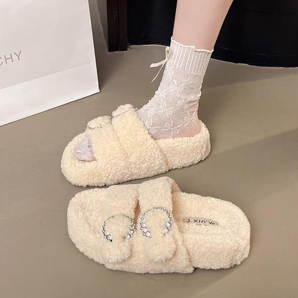Модная обувь Женские тапочки Меховые шлепанцы Платформенные шлепки Мода 2025 Плюшевые Роскошные Осенние Женские Туфли Тапочки Повседневные Платформенные Шле 35