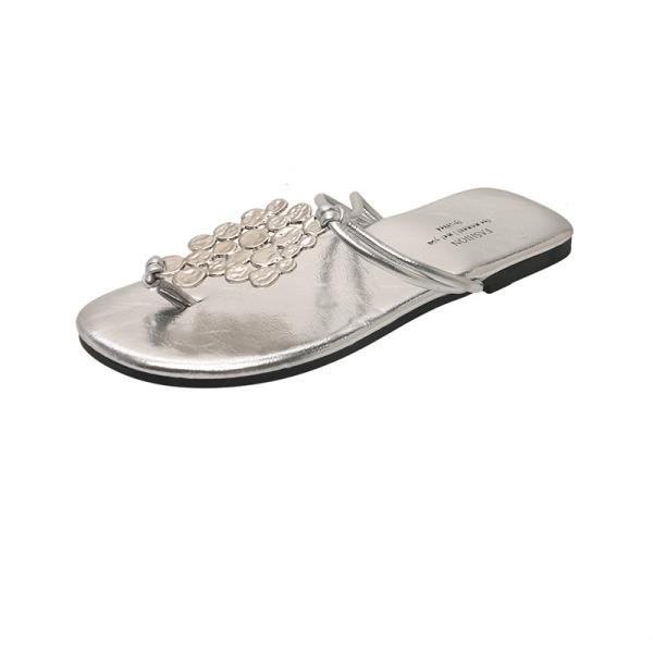 Модная обувь Тапочки Женские Летние Резиновые Шлепанцы Клепки Слайды Низкие Пантофли Модные Плоские Гавайские 2025 Роскошная Ткань Каблуки Копыто ПУ 35