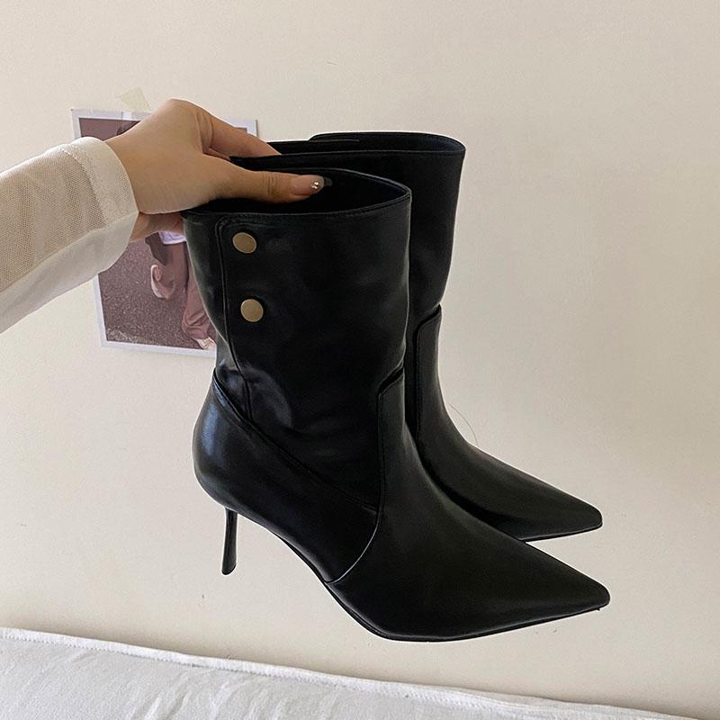 Модная обувь для вечеринок Современные женские ботильоны на тонком каблуке Обувь Модные женские короткие ботинки с острым носком Женские туфли-лодочки 35 чёрный