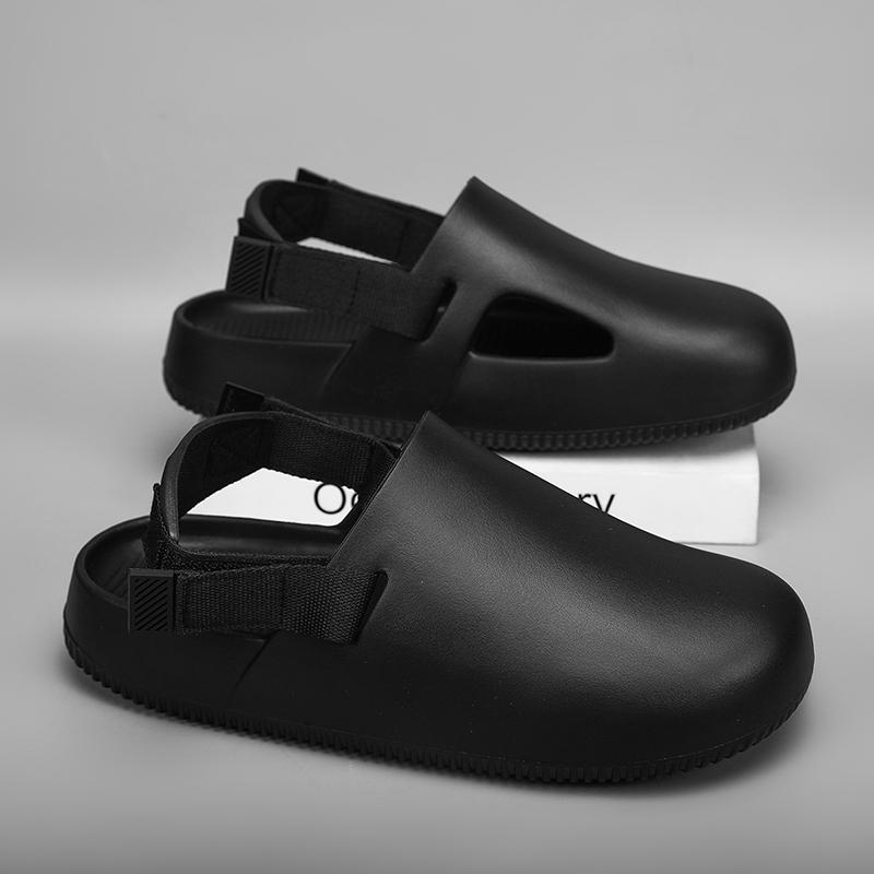 Модная обувь мужская летняя на толстой подошве, повседневные мужские пляжные сандалии, легкие, с перфорацией, дышащие шлепанцы с закрытым носком, парная повседневная обувь 40 чёрный