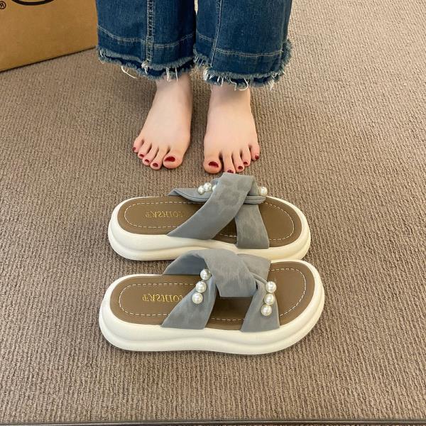 Модная обувь на шнуровке с бусинами, женские домашние тапочки, шлепанцы на платформе, летние клоги, женская обувь 2025, пляжные домашние тапочки на платформе, летняя женская обувь 35