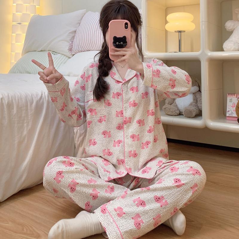Модная одежда для улицы, пижамный комплект с принтом в горошек для женщин, комплект из 2 предметов, повседневная ночная одежда для женщин, милая зимняя пижама XXL