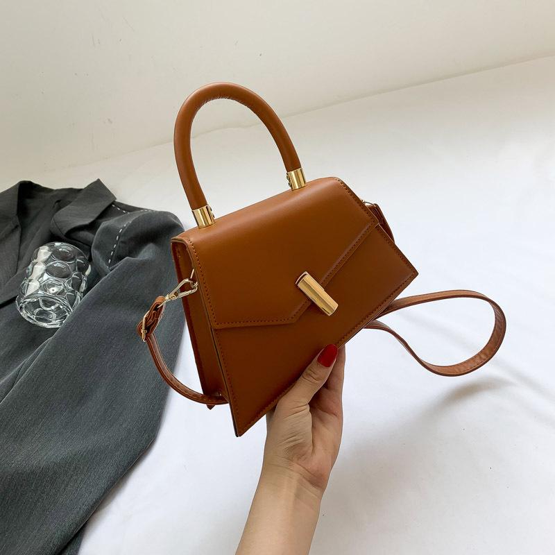 Модная однотонная сумка с замком-защелкой, повседневная, на одно плечо, кроссбоди, маленькая квадратная сумка для лета KTY 21x7x16.5cm коричневый