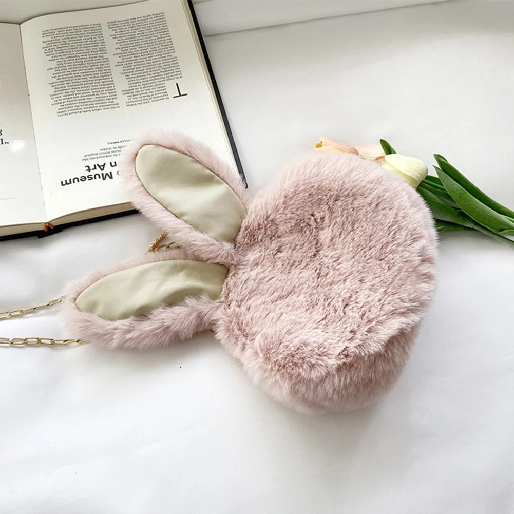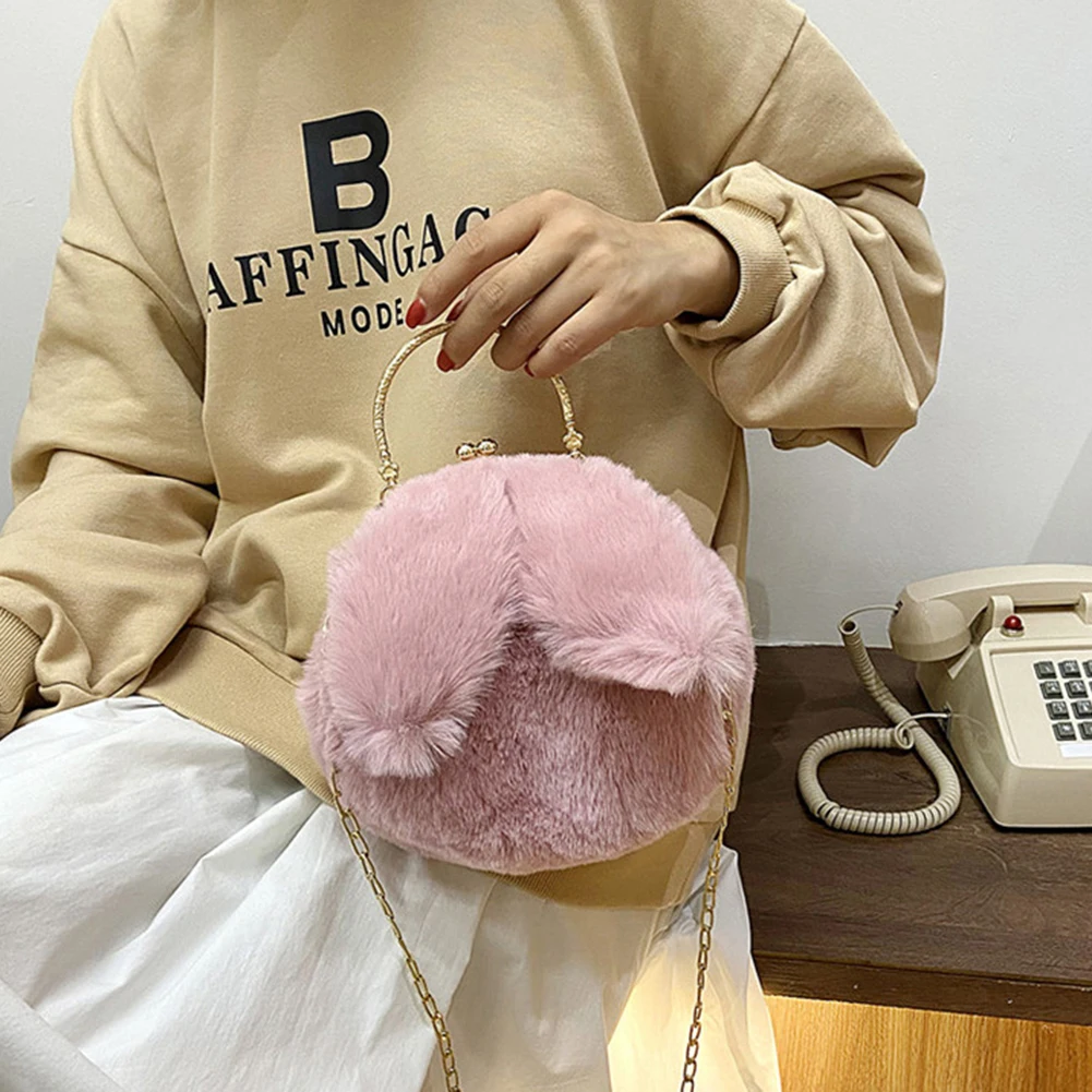 Модная плюшевая сумка через плечо с заячьими ушками, зимняя сумка на цепочке, однотонные сумки через плечо, милый женский мини-кошелек для д...