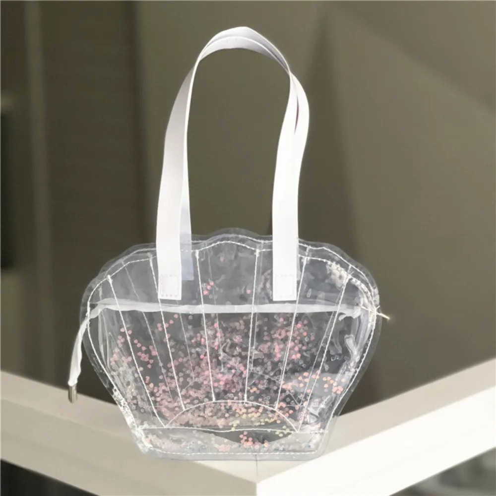 Модная пляжная сумка из ПВХ с блестками, большая вместительная косметичка в форме ракушки, морская летняя сумка для хранения плавания, дорожная сумка