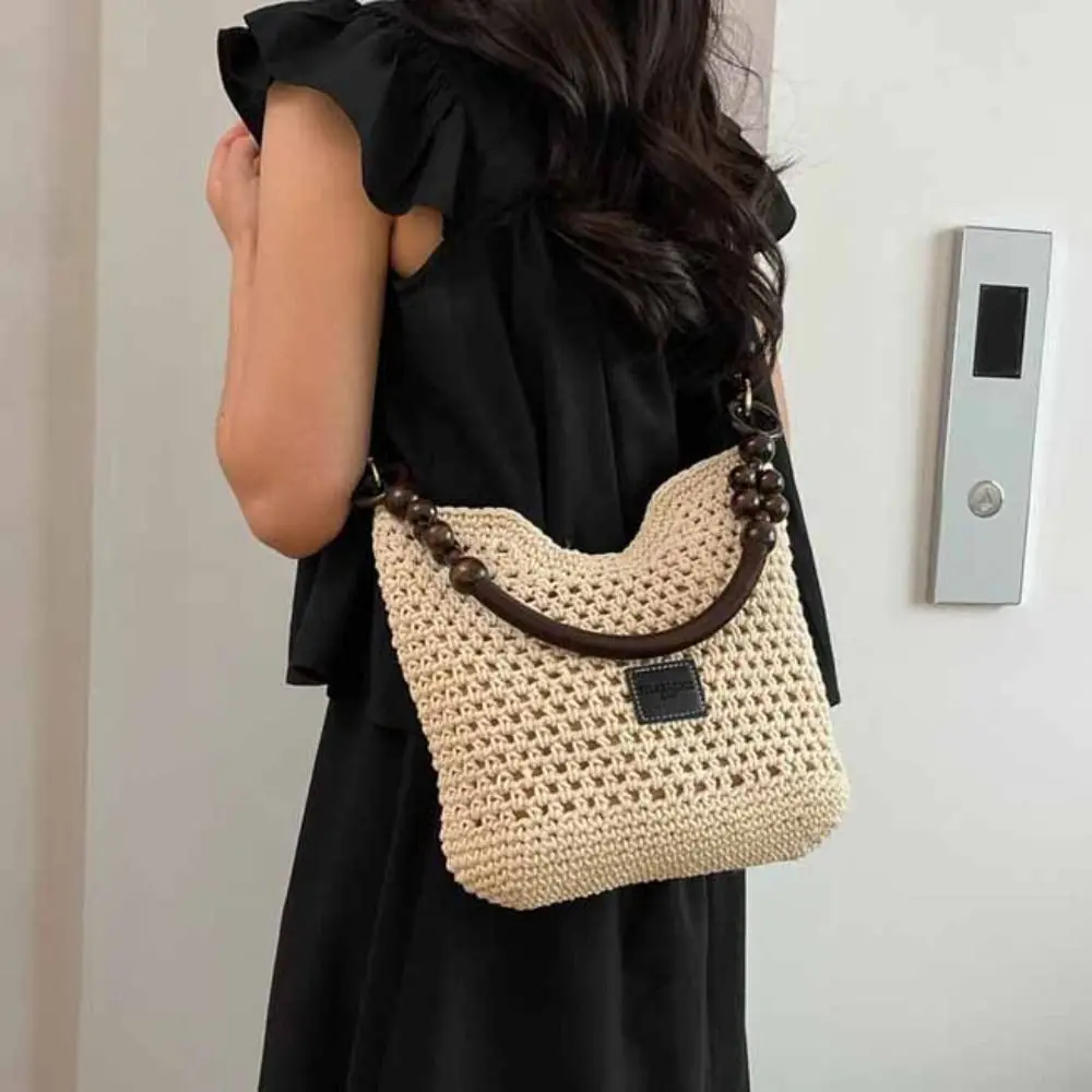 Модная пляжная тканая сумка с вырезами, пляжная сумка, большая вместительная богемная пляжная сумка, сумка-ведро, большая сумка, полая сумка на плечо, дорожная сумка