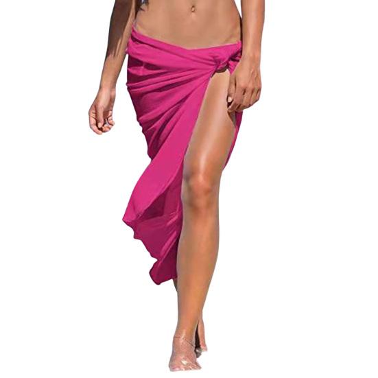 Модная пляжная шаль, тонкая универсальная прозрачная шифоновая шаль с защитой от ультрафиолета, шарф, юбка, пляжная одежда розы красного