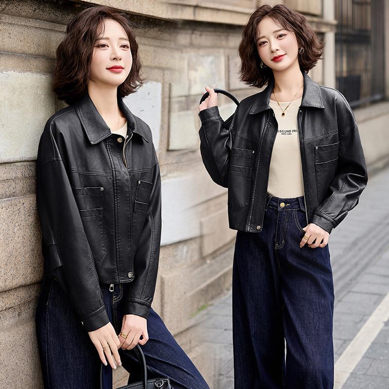 Модная повседневная кожаная куртка женская весна и осень новая маленькая дизайнерская свободная короткая куртка топ 2XL чёрный