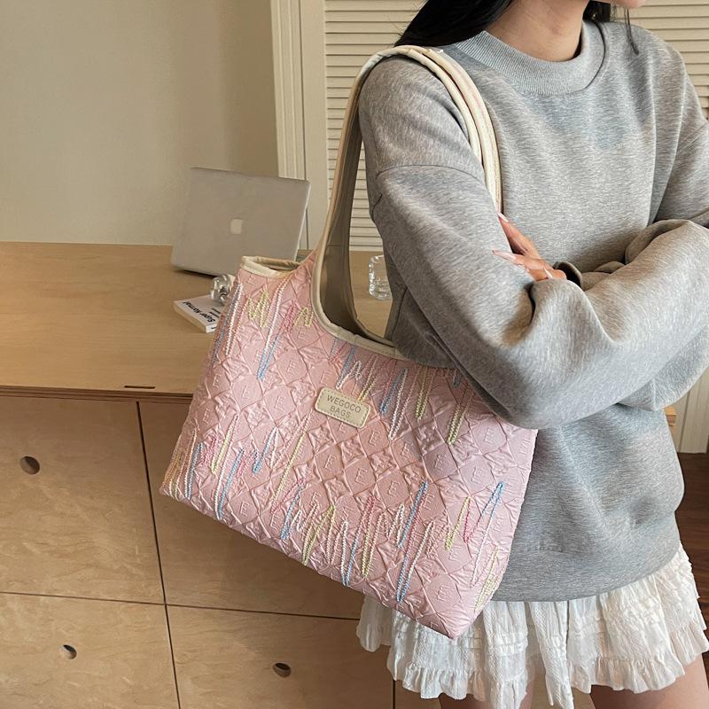 Модная повседневная наплечная сумка летняя новая тканевая сумка с персонализированной линией для поездок на работу большая вместимость сумка-тоут розовый