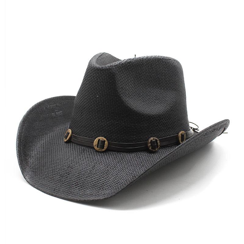 Модная повседневная соломенная шляпа ручной работы в этническом стиле с широкими полями в стиле джаз, мужская и женская соломенная шляпа с солнцезащитным козырьком для отдыха на открытом воздухе M(56-58cm) чёрный