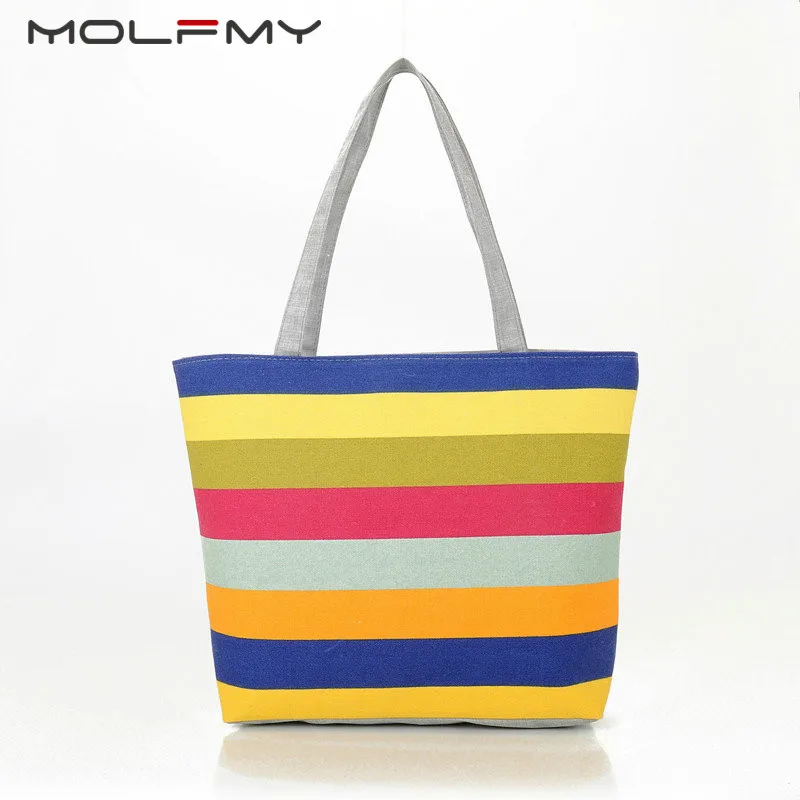 Модная полосатая Женская Холщовая Сумка, яркий цвет, на одно плечо, Повседневная Дамская сумочка в Корейском стиле для покупок, оптовая прод...